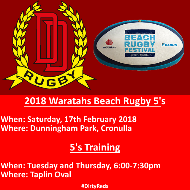 – Feb 17th, Waratahs Beach Rugby 5s at Dunningham Park, Cronulla